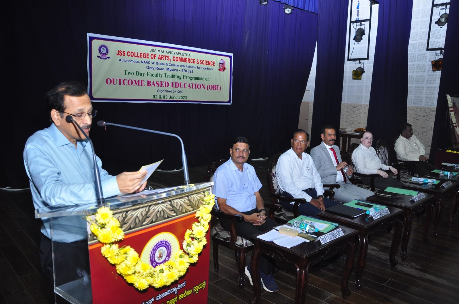 Glimpses of two day faculty training workshop on OBE and Attainment Calculation organized by JSS College of Arts, Commerce, and Science, Mysore, in association with ipsr solutions limited on June 2nd and 3rd. Inaugurated by Prof.Loknath N.K , Vice Chancellor, University of Mysore. The Presidential address was given by Prof.R Mugeshappa followed by Keynotes by Dr.Mendus Jacob, CEO IPSR solutions Ltd. Guest of Honour were Prof.BV Sambashiviah (Cief Executive), Prof.MP Vijayendra Kumar , Principal and Dr.Sunil Job, Chief of Academix Solutions , IPSR.
